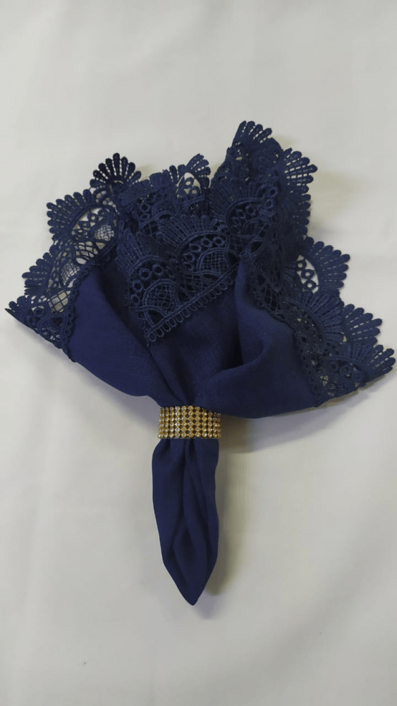 Locação de Guardanapo Cor: Azul Marinho Tecido: Algodão com aplicação de renda guipir na ponta Tamanho: 40×40 cm