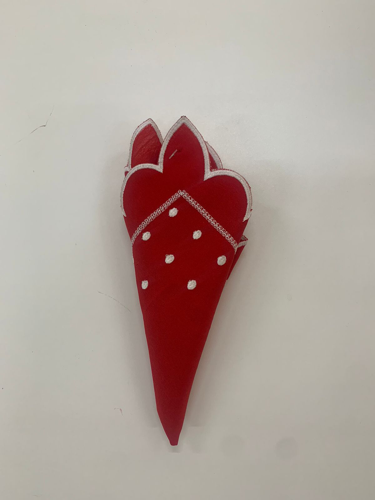 Locação de Guardanapo Cor: Vermelho com poá branco Tecido: Poliester com bordado Tamanho: 35×35 cm