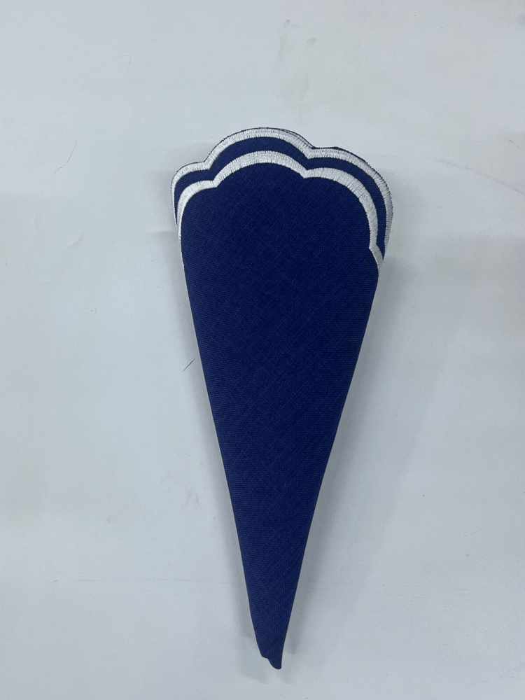 Locação de Jogo Americano Quadrado Cor: Azul Marinho com Bordado branco na ponta Tamanho: 45×45 cm Tecido: Algodão