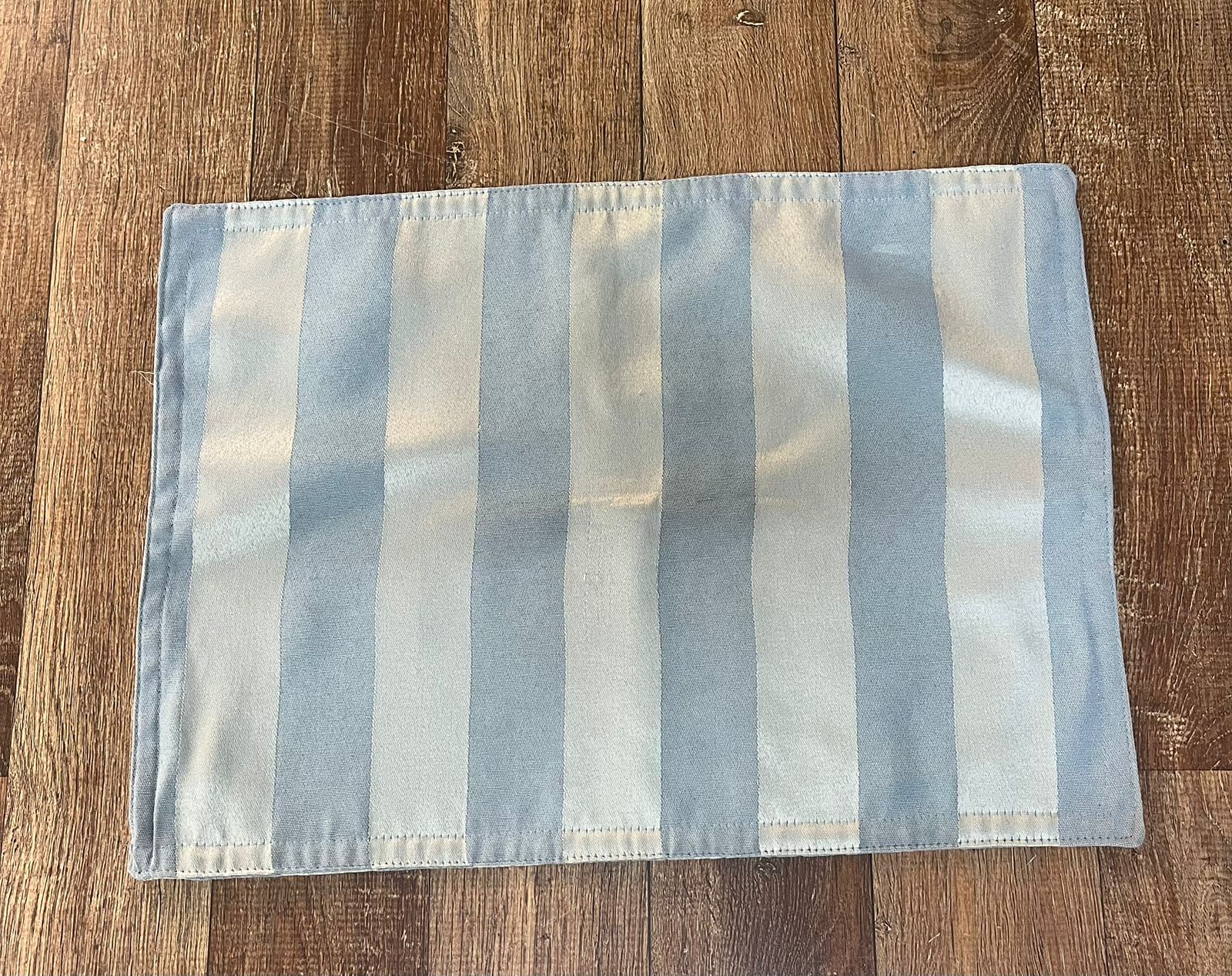 Locação de Jogo Americano Cor: Prata listrado com azul Tamanho: 47×33 cm Tecido: Cetim