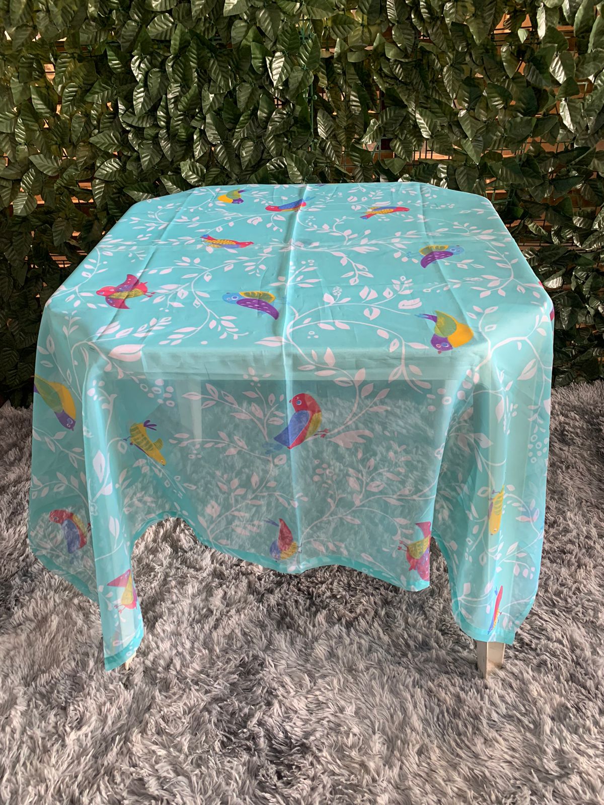 Pode ser usada na mesa quadrada plástica ou como cobre-mancha da mesa redonda de 6 lugares