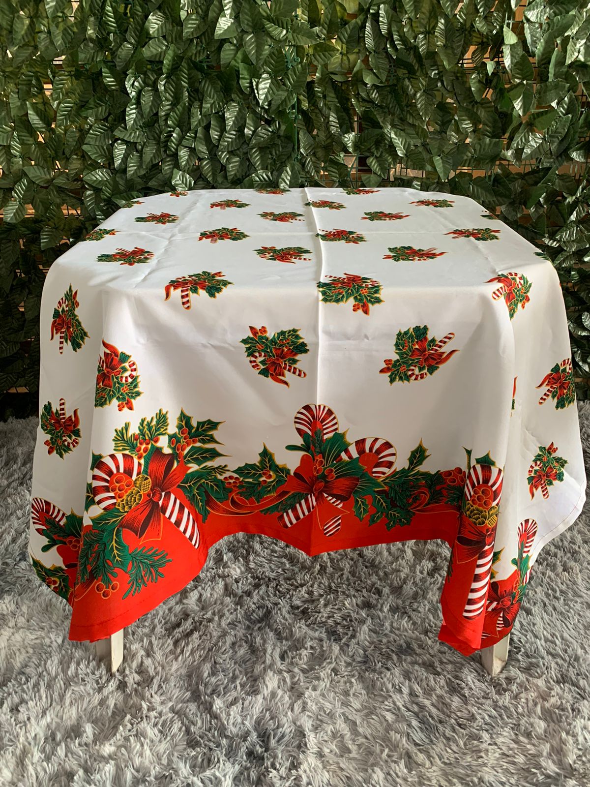 Pode ser usada na mesa quadrada plástica ou como cobre-mancha da mesa redonda de 6 lugares