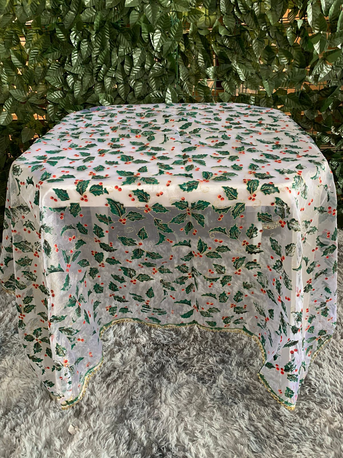 Pode ser usada na mesa quadrada plástica ou como cobre-mancha da mesa redonda de 6 lugares