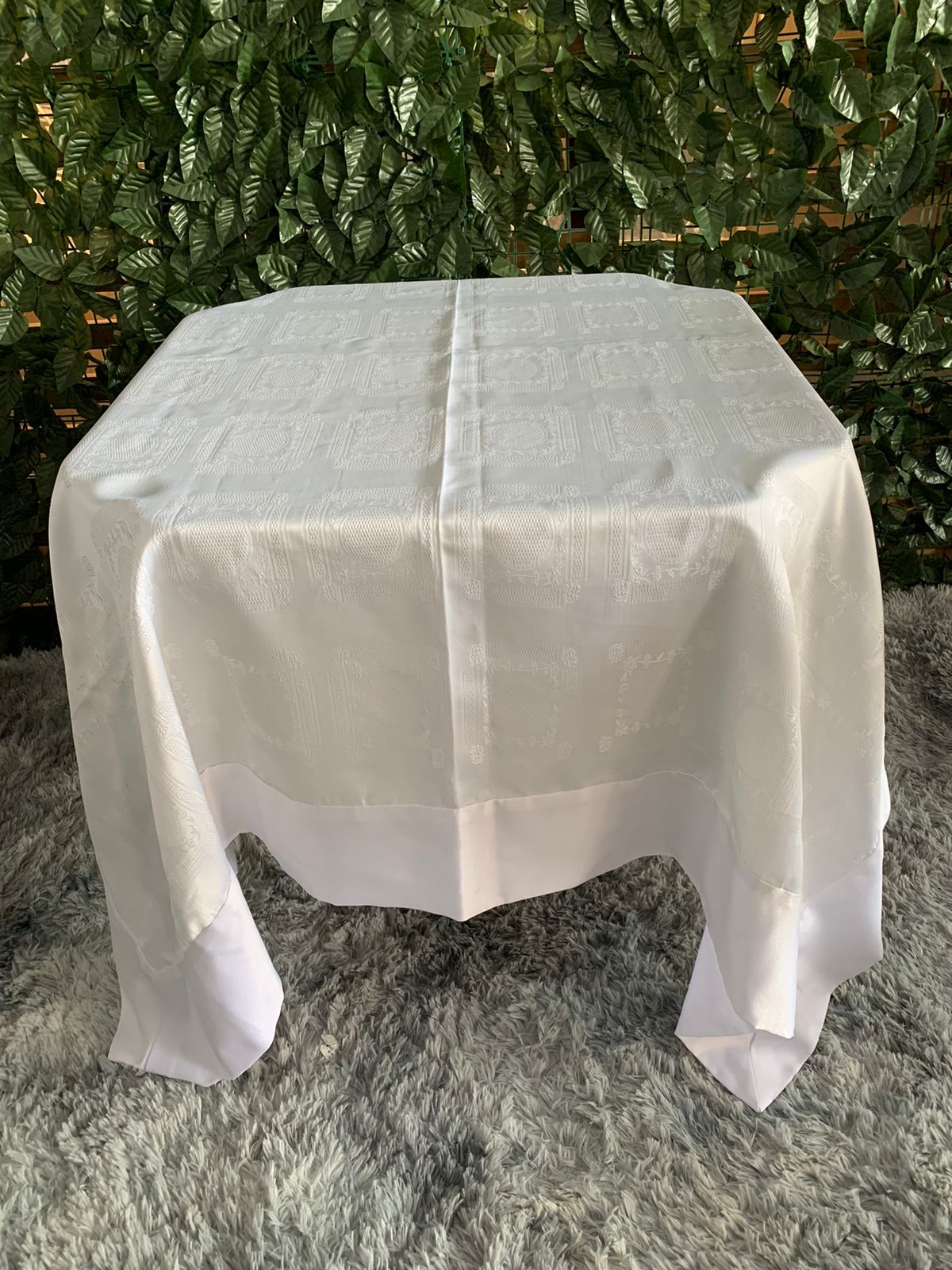 Locação de Toalha Quadrada Adamascada com Barrado em Cetim –