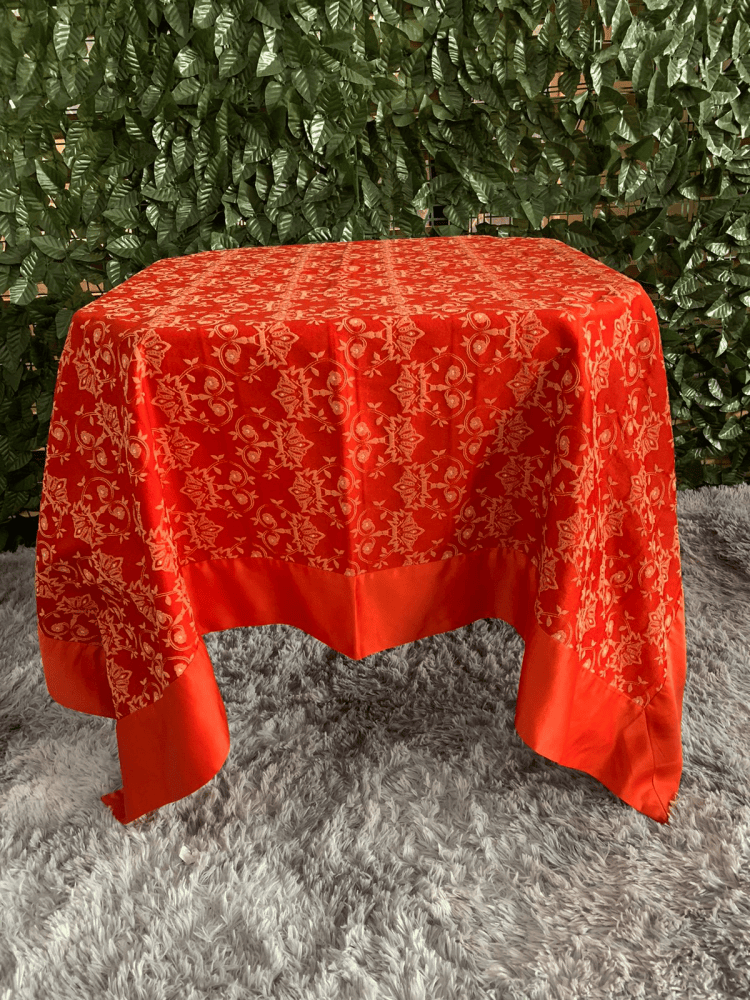Locação de Toalha Quadrada Adamascada com Barrado em Cetim
